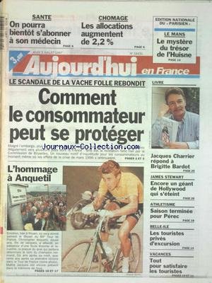 LE SCANDALE DE LA VACHE FOLLE REBONDIT - LIVRE - JACQUES CHARRIER REPOND A BRIGITTE BARDOT - JAMES STEWART EST MORT - BELLE-ILE - LES TOURISTES PRIVES D'EXCURSION - LES SPORTS - L'HOMMAGE A ANQUETIL - ATHLETISME ET PEREC