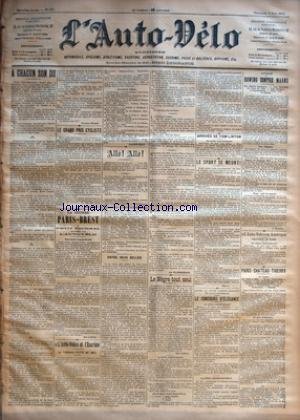 AUTO VELO (L') [No 231] du 02/06/1901 - A CHACUN SON DU PAR GEORGES PRADE - LE GRAND PRIX CYCLISTE PAR GEO LEFEVRE - LA COURSE PARIS-BREST DU PETIT JOURNAL ORGANISEE PAR L'AUTO-VELO - NOUVEAUX ENGAGEMENTS PAR GEO LEFEVRE - +ŒL'AUTO-VELO+« ET L'ESCRIME - LE TOURNOI D'EPEE DE 1901 - RESULTATS D'HIER - ALLO! ALLO! - ENTRE DEUX SELLES PAR H. DESGRANGE - LE TELEPHONISTE - LE NEGRE TOUT SEUL PAR GEO LEFEVRE - ARRIVEE DE TOM LINTON PAR RAY - LE SPORT SE MEURT! PAR GEO L. - APRE