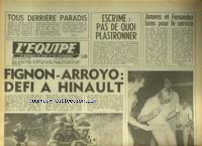 Descriptions EQUIPE (L') [No 11571] du 26/07/1983 - TOUS DERRIERE PARADIS - ESCRIME - AMOROS ET FERNANDEZ - FIGNON - ARROYO - DEFI A HINAULT. livreTOUS DERRIERE PARADIS - ESCRIME - AMOROS ET FERNANDEZ - FIGNON - ARROYO - DEFI A HINAULT. .