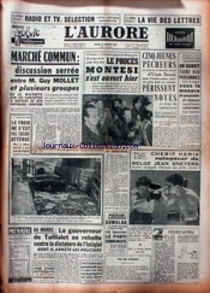 AURORE (L') du 22/01/1957 - MARCHE COMMUNS - GUY MOLLET - LE PROCES MONTESI A VENISE - CHERIF HAMIA VAINQUEUR DU BELGE JEAN SNEYERS - BOXE - MAROC - POLOGNE - GOMULKA.