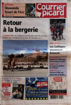 COURRIER PICARD [No 19120] du 02/10/2005 - HAPPISME - SHAWANDA FAVORI DE L'ARC - RETOUR A LA BERGERIE - LE CROTOY - PLUS DE 5 000 PERSONNES ONT SUIVI LA TRANSHUMANCE DES MOUTONS DE LA BAIE DE SOMME - HOCKEY SUR GLACE - LES GOTHIQUES ASSOMMENT BRIAN-œON - WOINCOURT - INQUIETANTE DISPARITION DE TROIS FRERES ET SOEUR - AMIENS - ZIC ZAZOU AU MEILLEUR DE SA FORME - ABBEVILLE - PECHEURS D+¡ELITE AUX PRISES AVEC LA SOMME