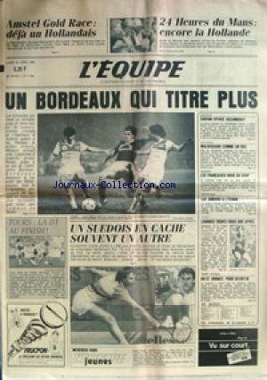 EQUIPE (L') [No 11804] du 23/04/1984 - AMSTEL GOLD RACE - 24 HEURES DU MANS - LA HOLLANDE - BORDEAUX - FOOT - TENNIS - ATHLETISME - CIOFANI - ACCAMBRAY - AUTO - WALDEGAARD - ESCRIME - RUGBY - TENNIS DE TABLE.